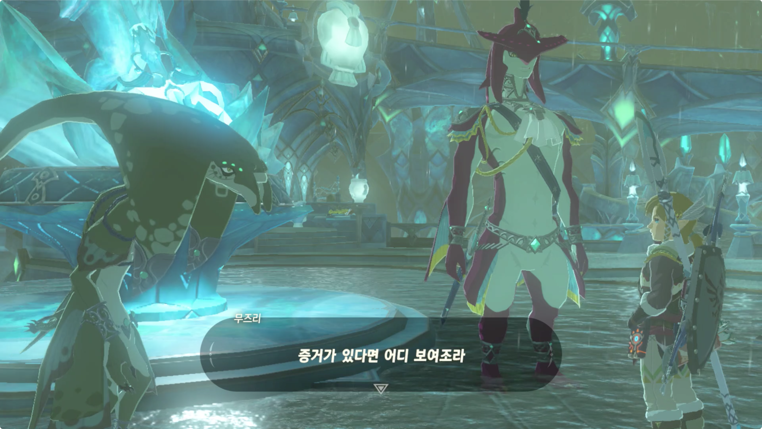 어쨌건 무즈리가 증거를 대라면서 하는데, 좀전에 받은 조라의 갑옷으로 갈아 입고 대화를 걸어줍니다.