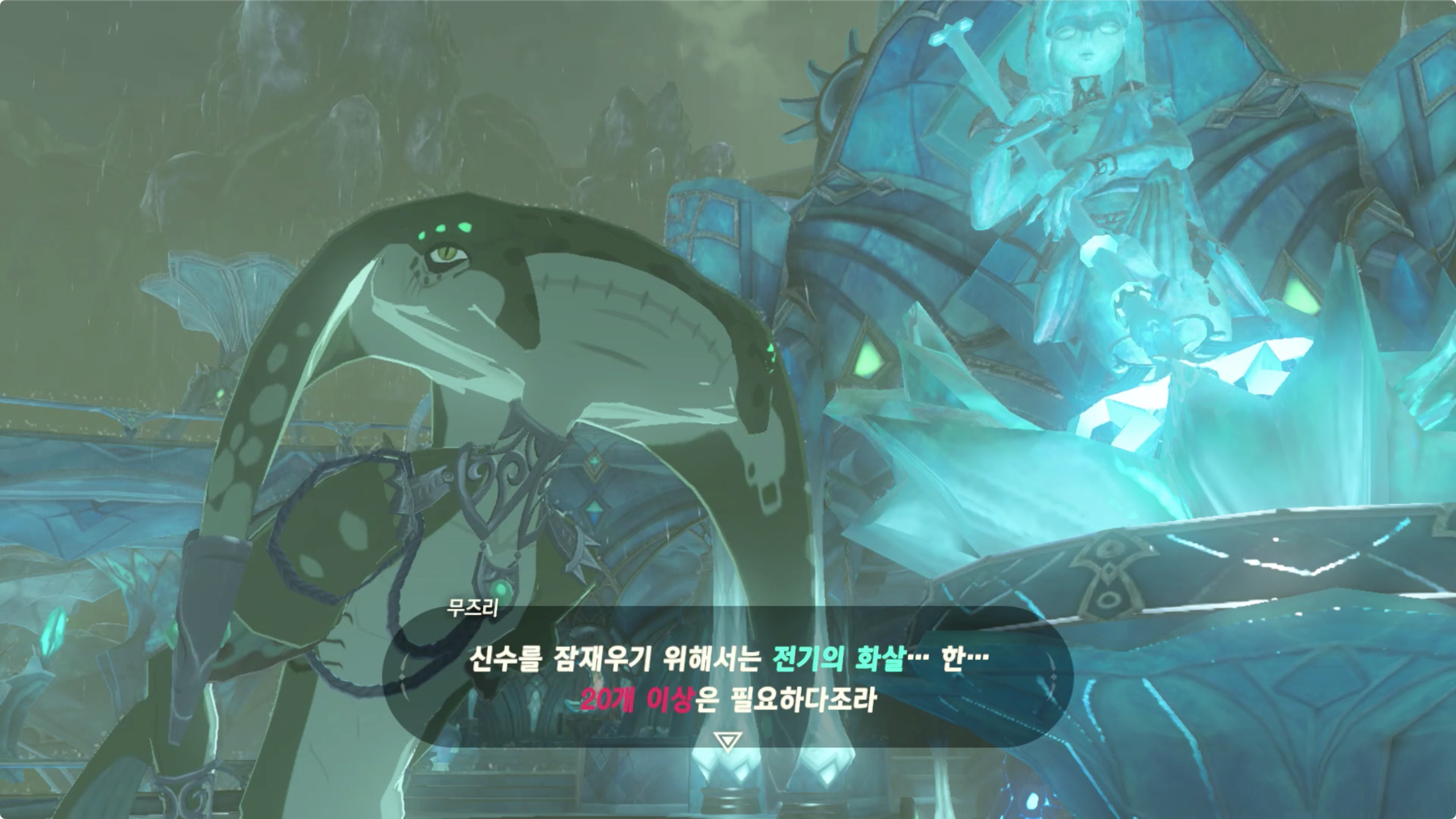 그럼 여차저차해서 신수를 잠재우기위해서 전기의 화살이 20개 필요하다고 합니다.