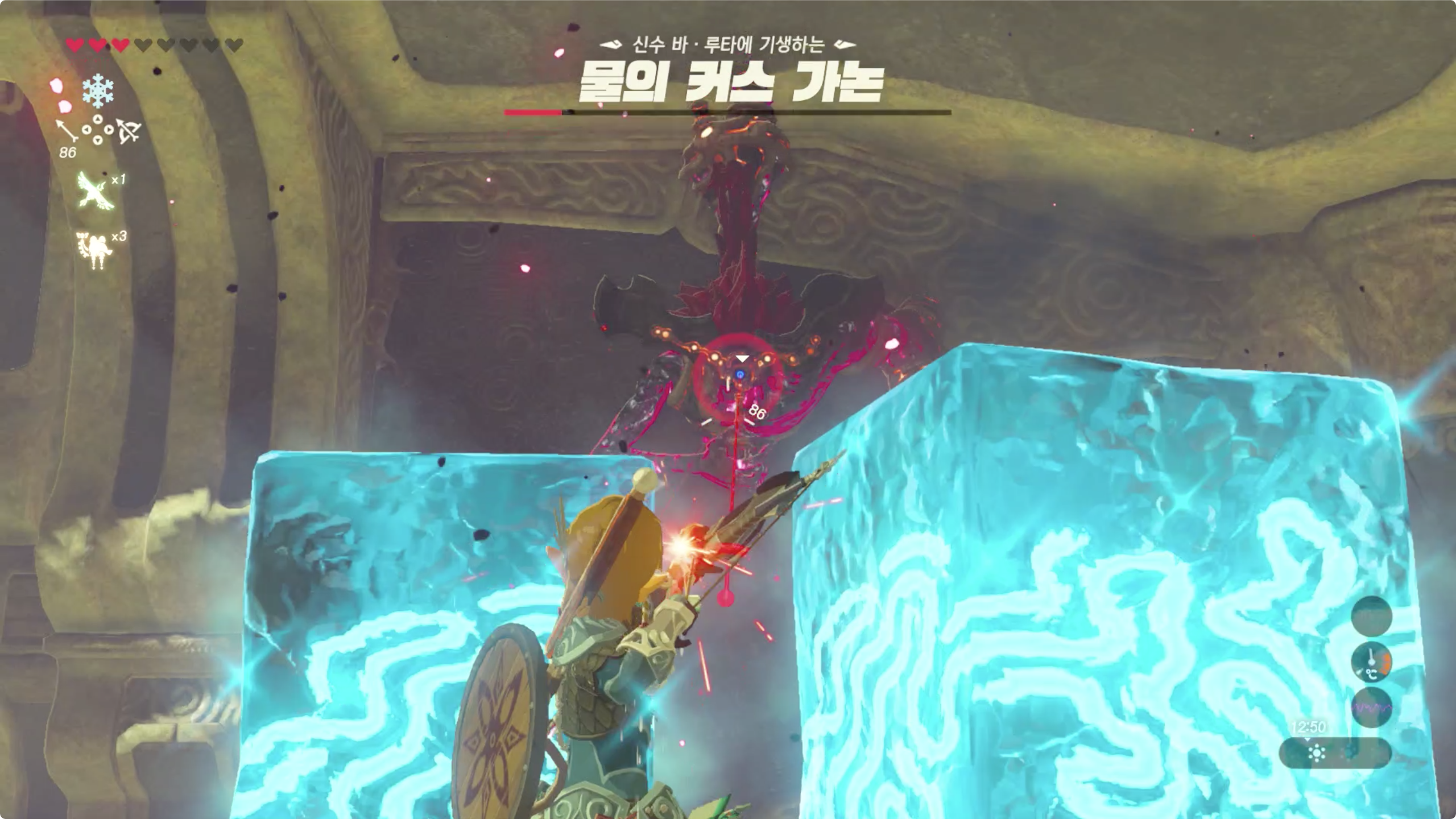 이동했으면 처음 신수 진입 미션처럼 얼음을 던지는데 아이스 메이커로 파괴가 가능합니다만...