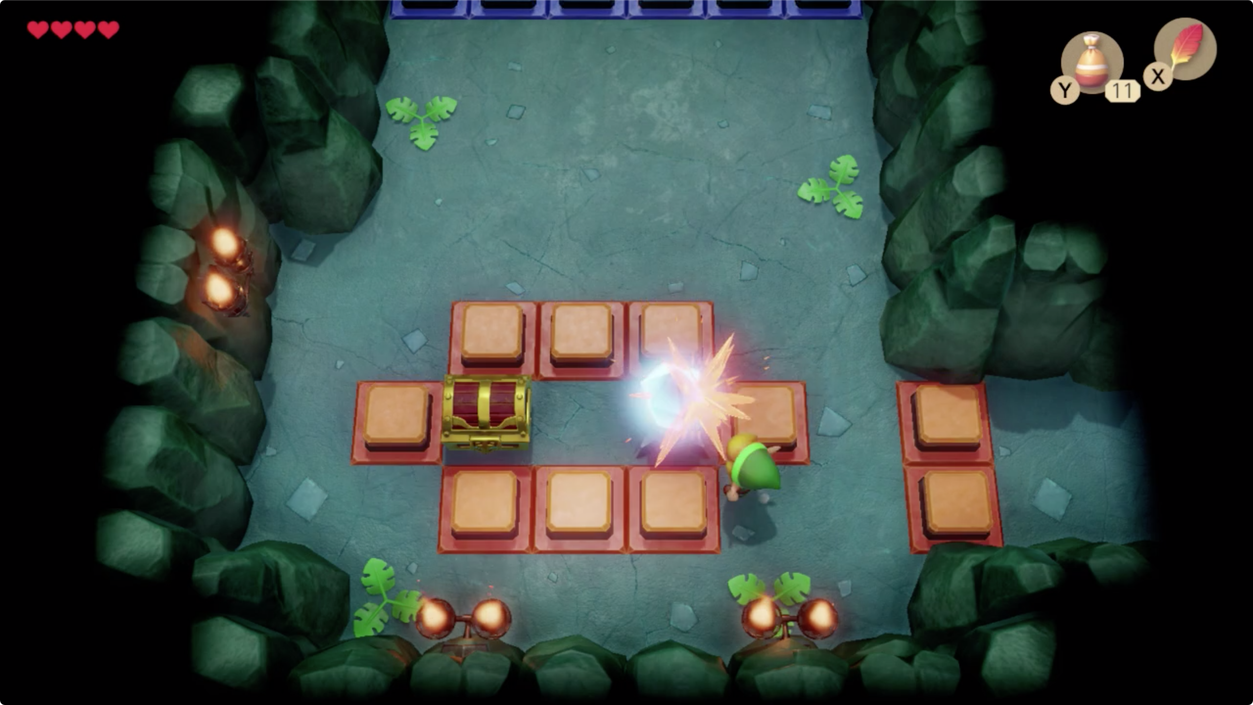 이 방의 적은 젤다와 반대방향으로 움직이니 잘 움직여서 서로 등을 지게 한 후 회전 베리고 공격하면 된다.