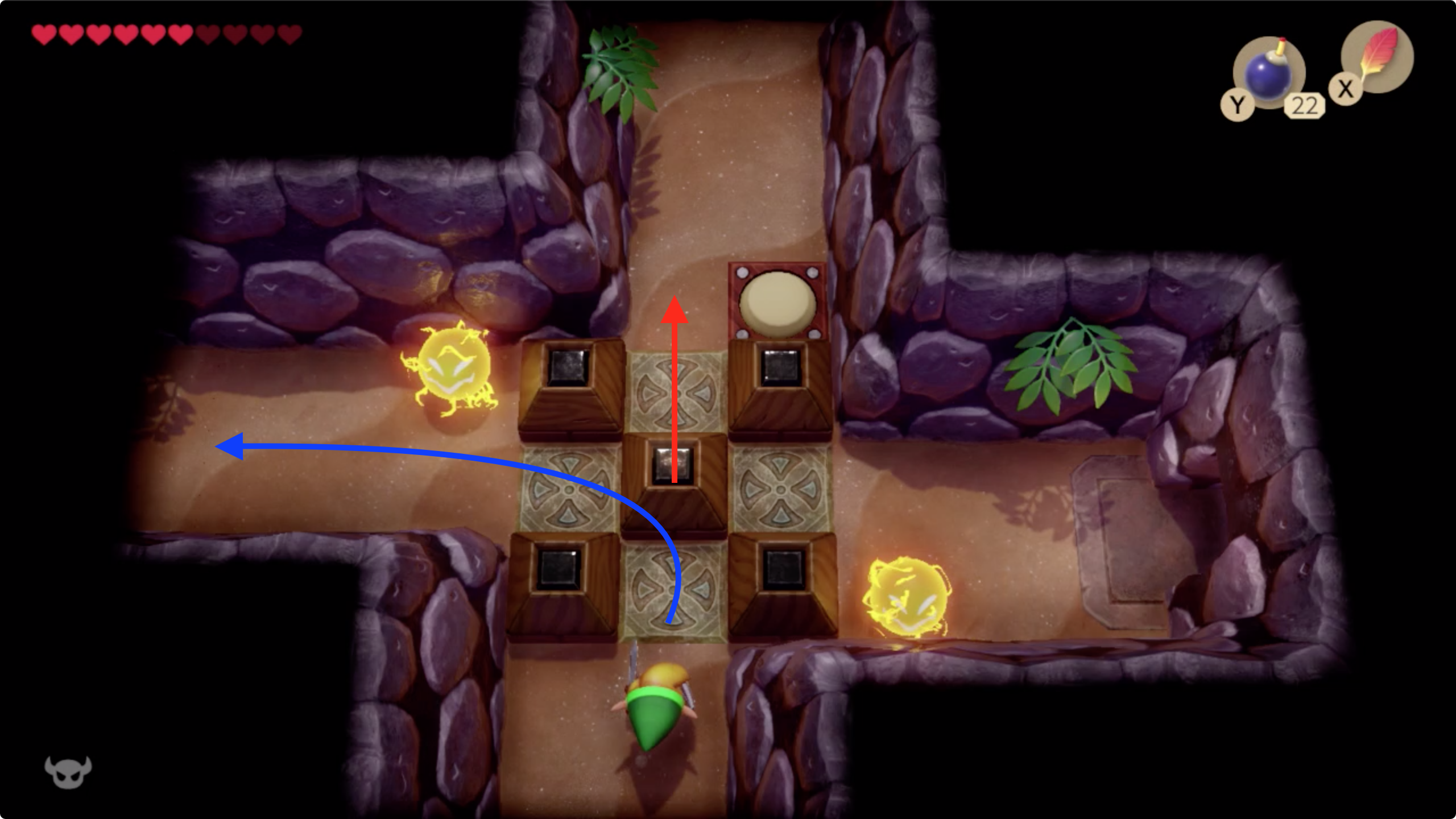 방향은 [◀︎◀︎▲▲▲] 로 이동해 마스터 스탈폰과의 전투가 있었던 방을 지나 [▶︎▲] 로 가면 상자를 밀던 방이 나온다.