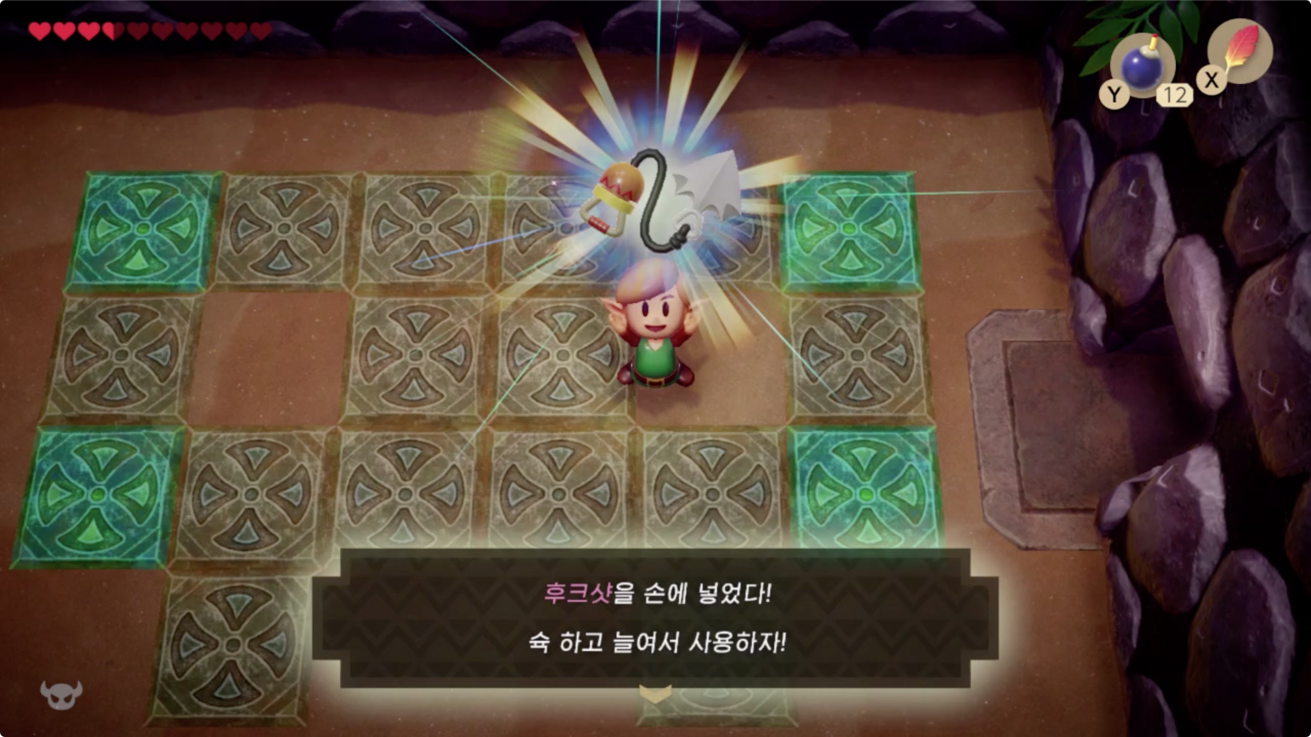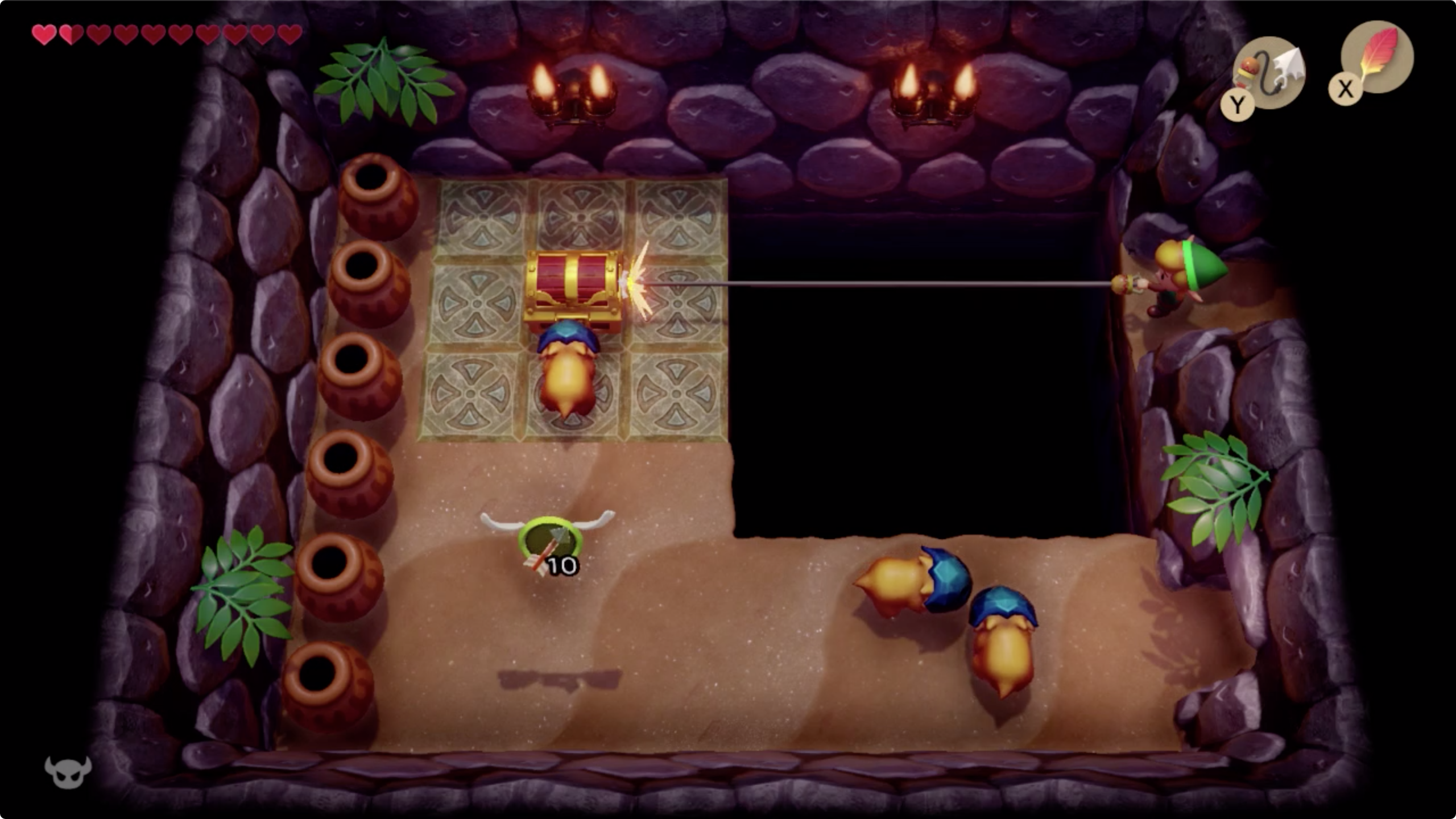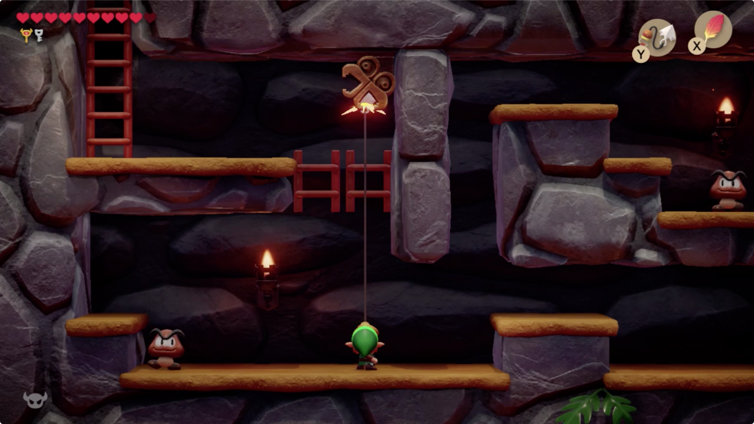 이곳에서 보물상자를 향해 후크샷으로 이동 (보물상자 : 50루피)