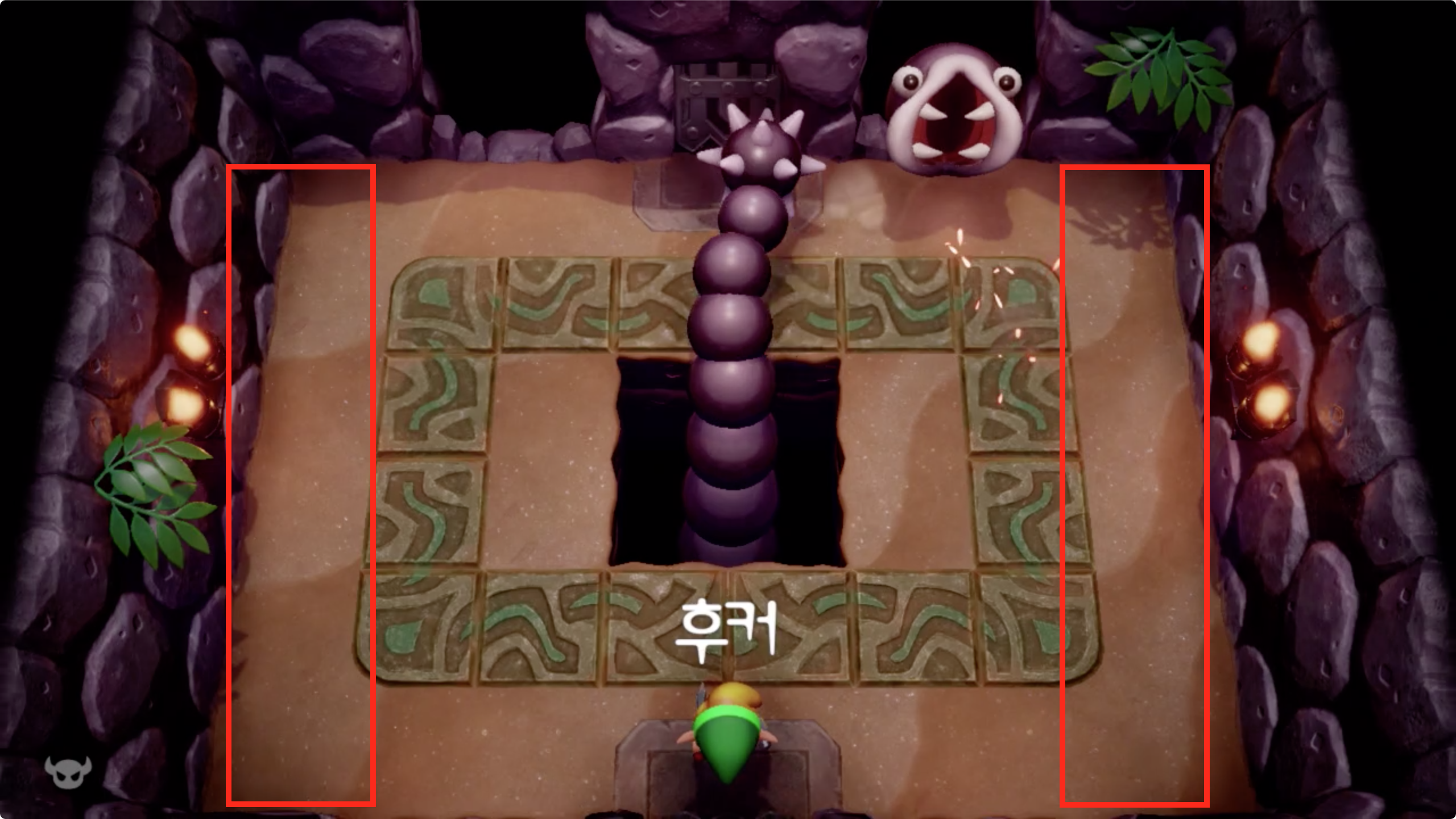 공격패턴은 단조롭다. 꼬리가 방 전체를 움직이는데 좌 우의 끝은 닿지 않기 때문에 안전하다.