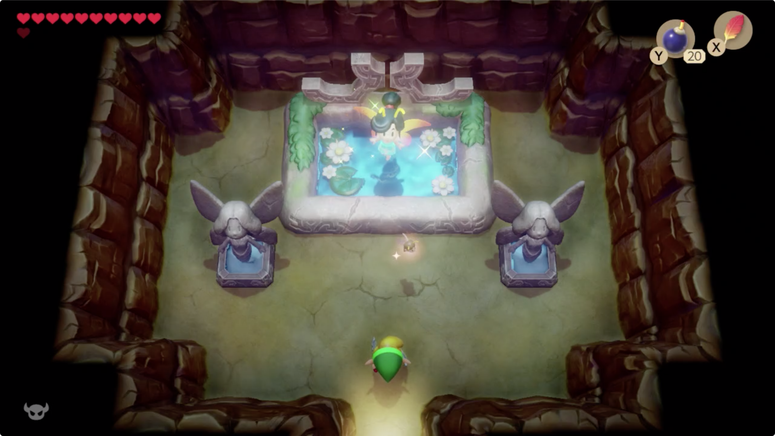 ◈ 안쪽의 석상은 근접해서 깨운다음 부메랑으로 잡던지, 후크샷으로 기절시킨후 들어서 호수로 던져버리는 방법으로 치울수 있다.