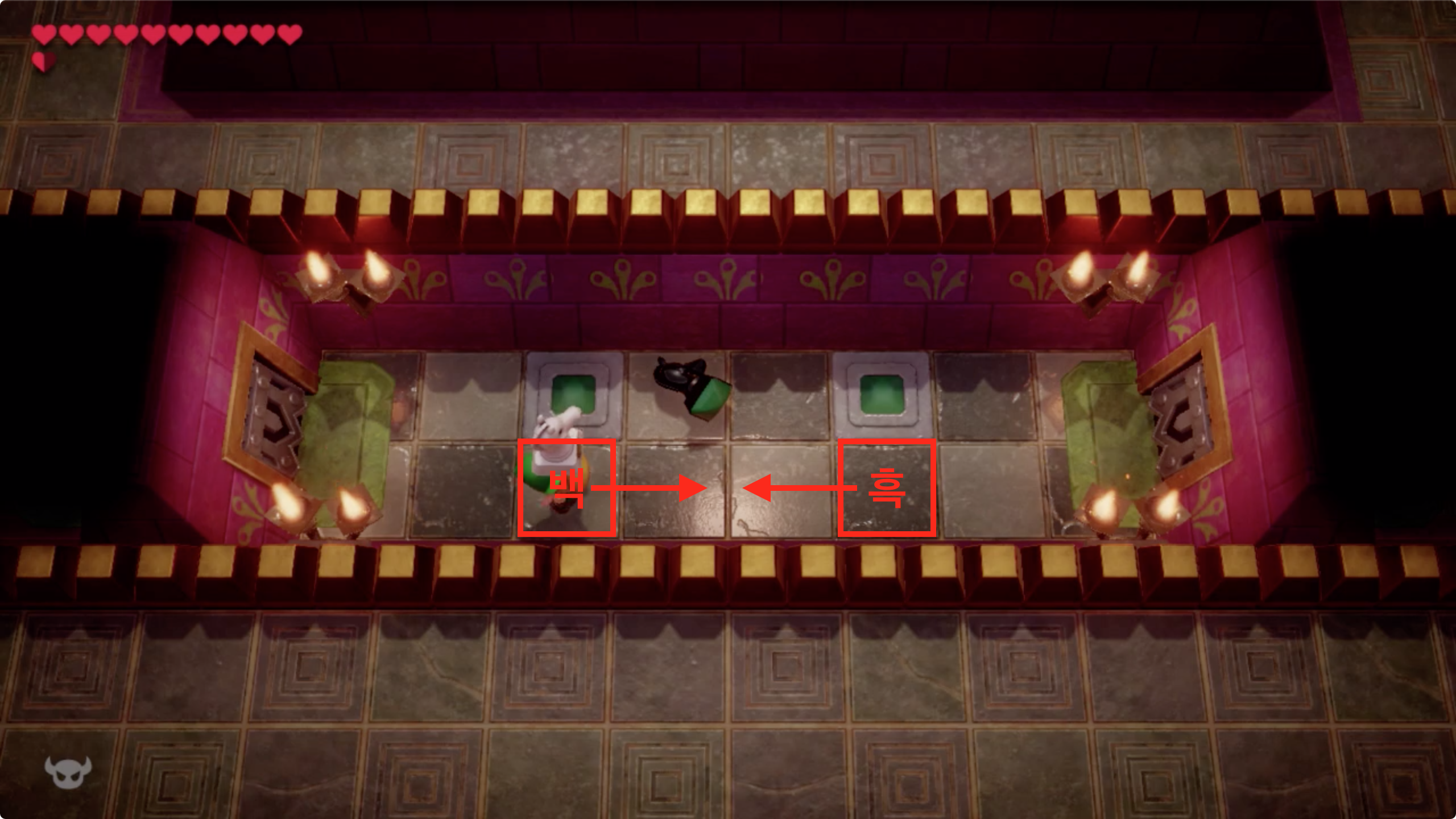 - 6칸 안이 아니라도 터지기만 하면 상관없지만 링크가 있는 땅을 계속해서 없애기 때문에 바깥쪽 바닥은 폭탄설치가 실패할 수가 있다.