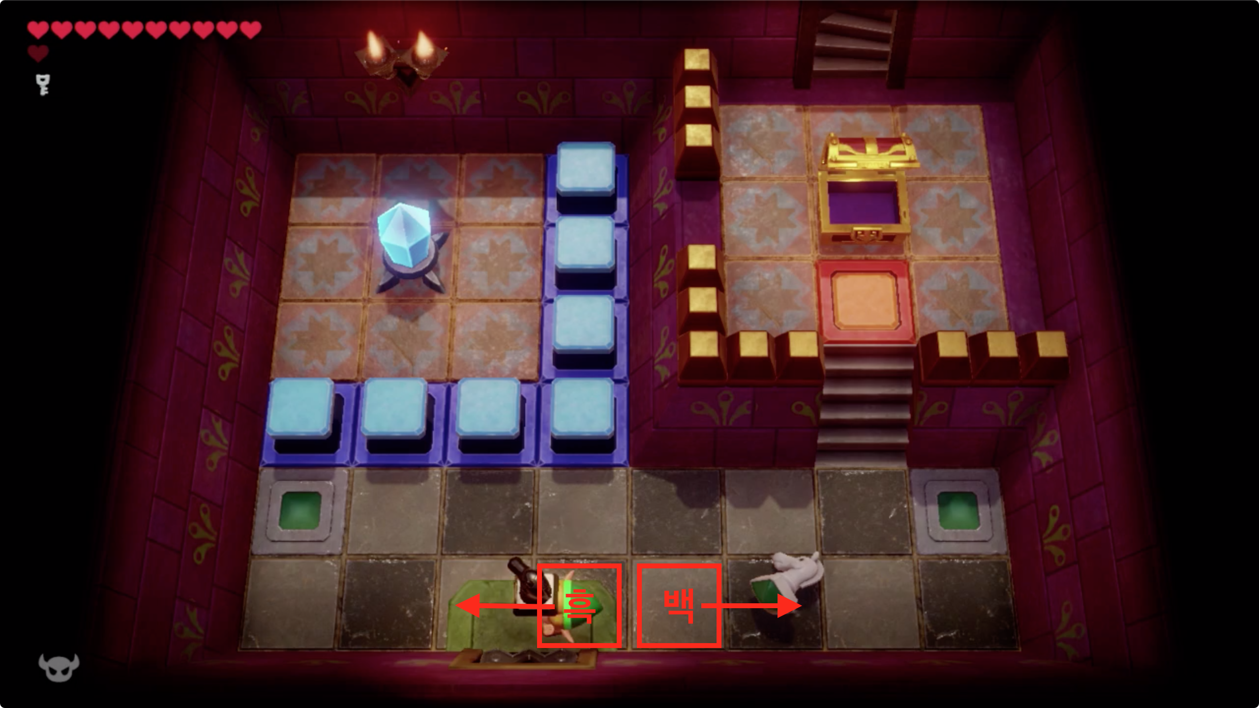 20. 적을 정리한 후 보물상자에서 300 루피 획득. 체스말을 제자리에 놓아주자.