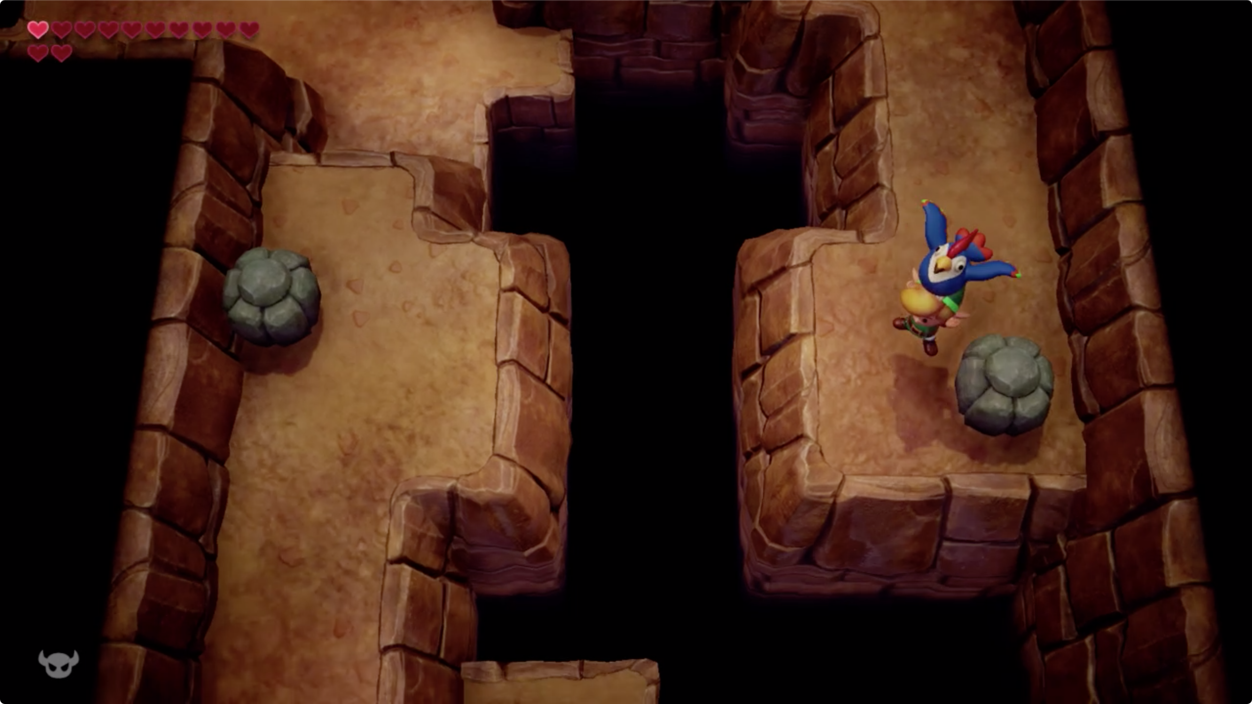 안쪽으로 들어가 계단을 타고 이동하자. (이전에 먹을수 없었던 보물상자는 후크샷 혹은 닭을 이용해 건너갈 수 있다)