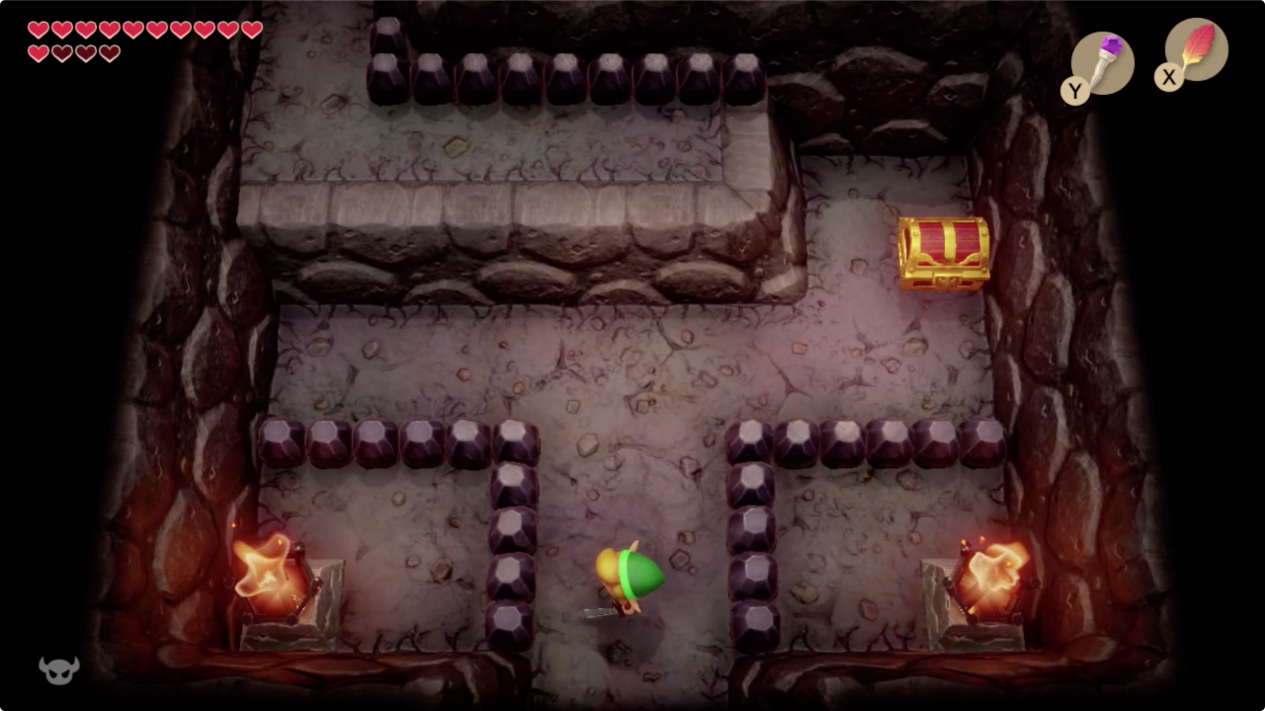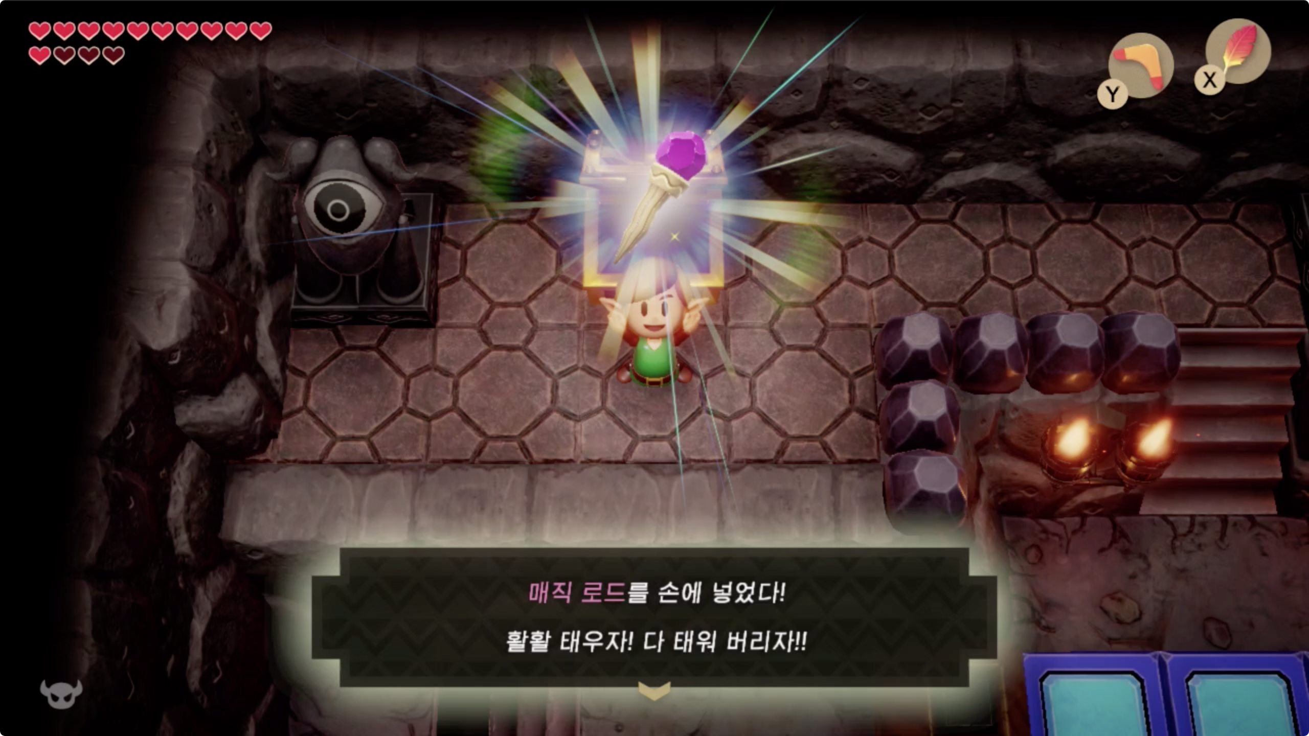 37. 매직 로드를 이용해 양쪽에 불을 붙여 주면 보물상자가 나타나며 작은 열쇠를 입수 할 수 있습니다.
