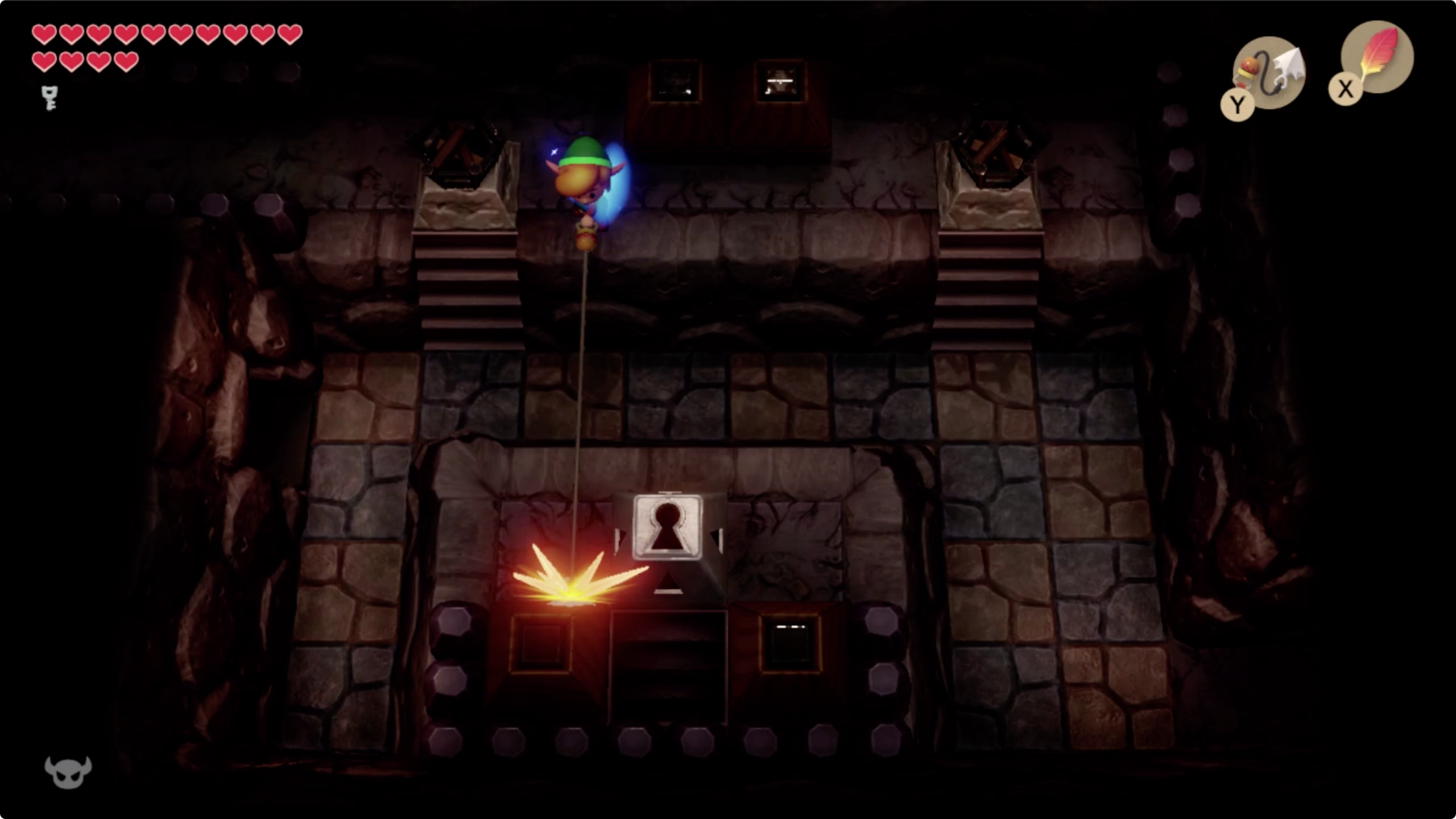 *왼쪽으로 들어가 계단을 타고 다시 오른쪽 방으로 온 후 후크샷을 이용해 보물상자(50루피)를 획득 할 수 있습니다.