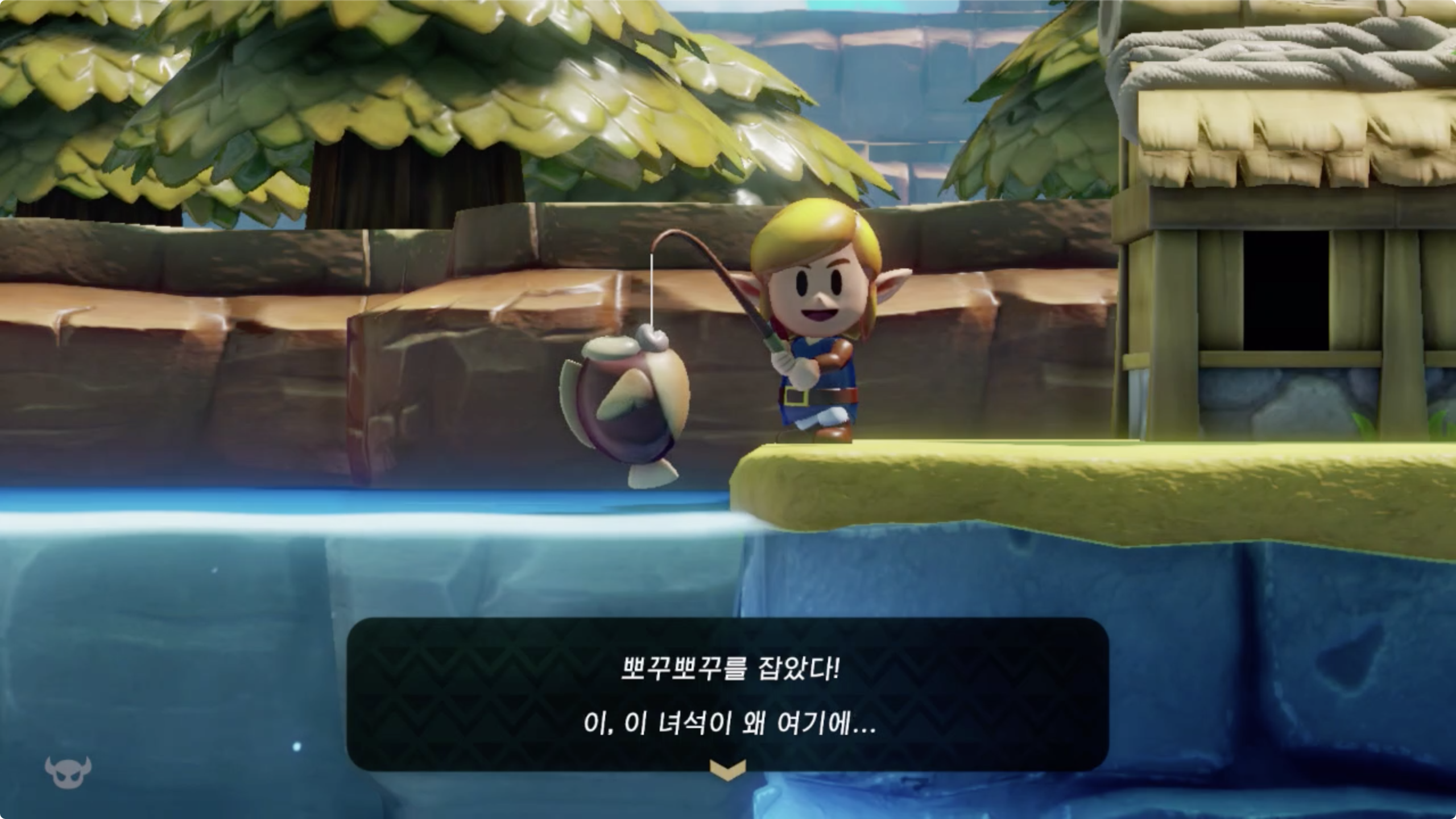 이녀석은 힘이 없기 때문에 언제든지 물면 A 버튼 연타로 낚아 올릴 수 있습니다.