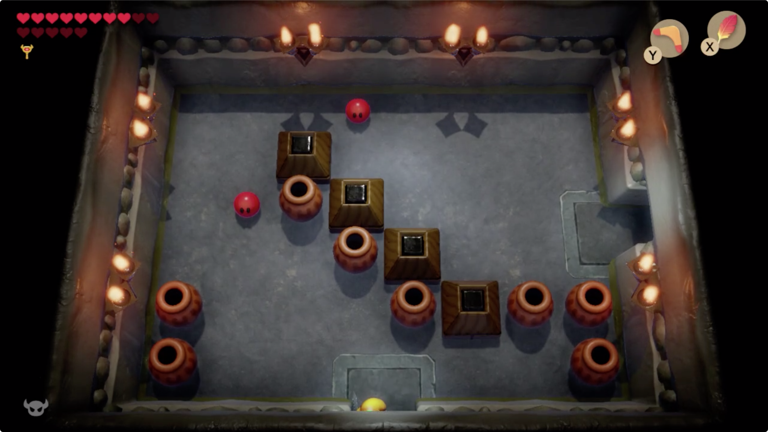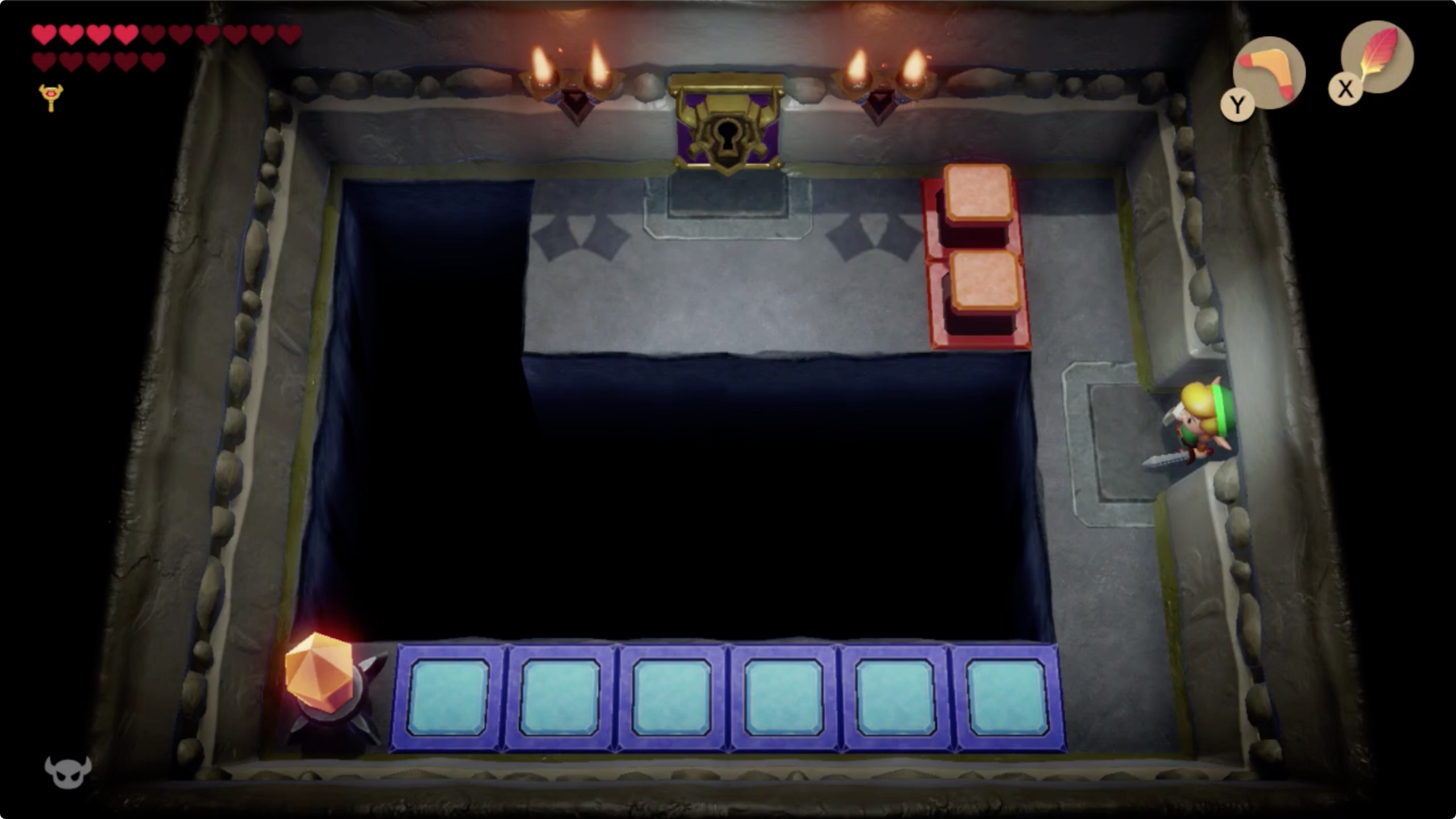 오른쪽 방으로 이동한 후 열쇠를 이용해 중간보스방으로 가자 [▶︎▲]