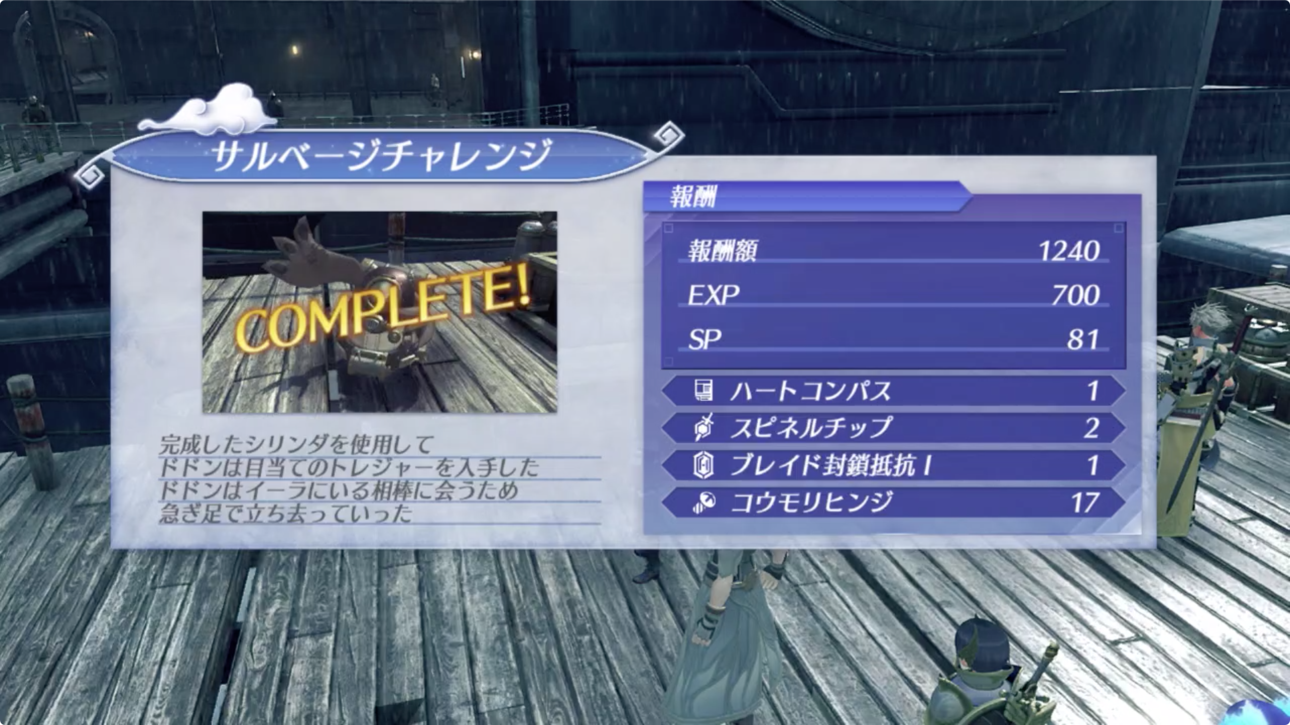 - タキトゥス・ウニン Lv.20 을 쓰러뜨리고 도돈 대신 보물상자를 열어 귀중품 그라비티 클러치(グラビティ・クラッチ)를 입수한 후, 이걸 도돈에게 전해주면 퀘스트 완료.