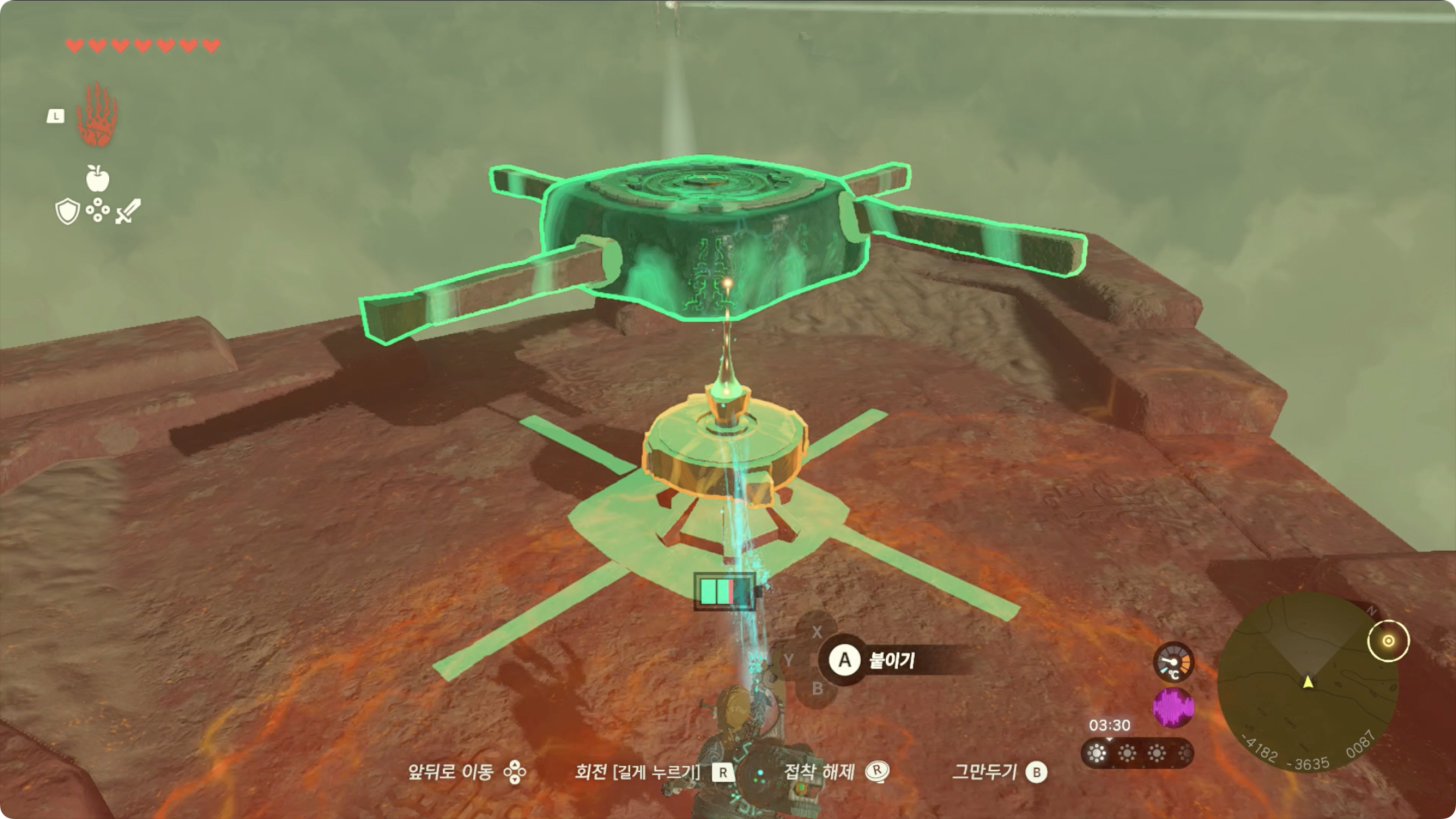 (11) 두번째 기둥 위로 바로 옆의 기둥위로 올라가면 레버가 보이는데, 반시계 방향으로 회전시킵니다. (기둥의 높이를 조절합니다)