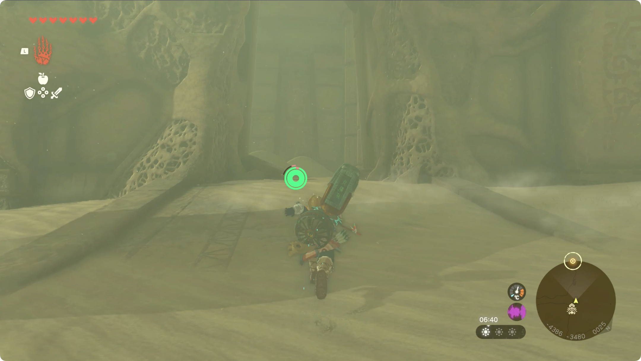 사막의 갈라진 틈이 나타나면 오른쪽 방향으로 순회하거나 (스테미너가 1.5줄 이상이라면) 페러세일로 그대로 건너가는것을 추천합니다.
