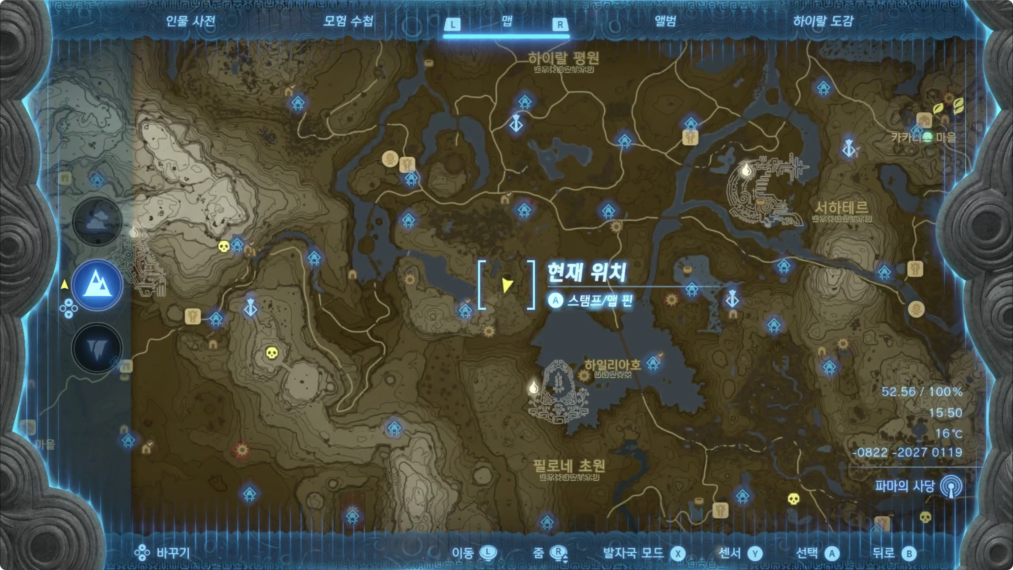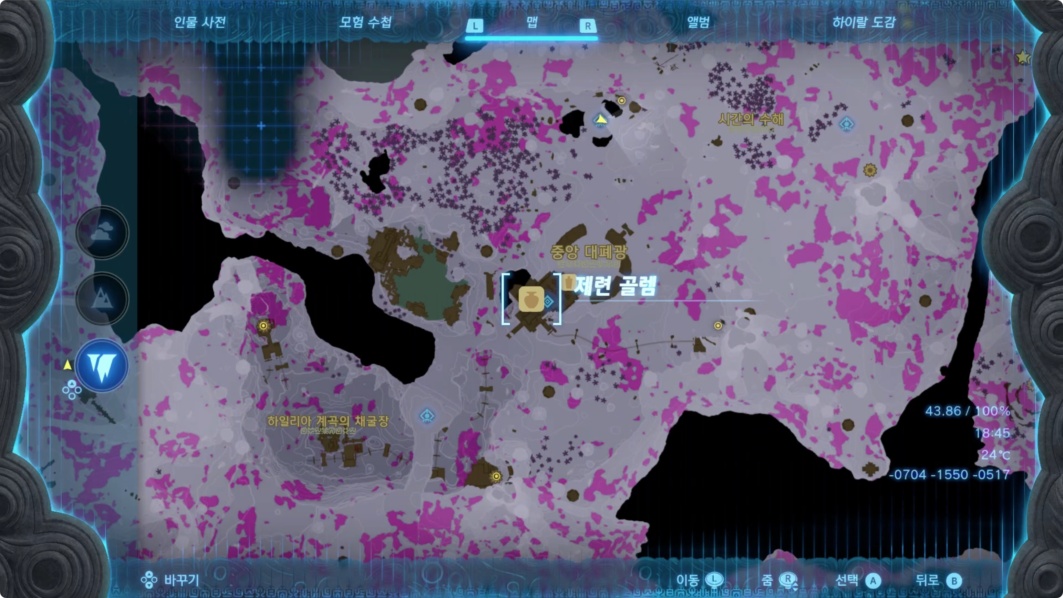 (5) 지저로 내려온 후 지도를 확인하면 눈의 위치를 확인할 수 있습니다.